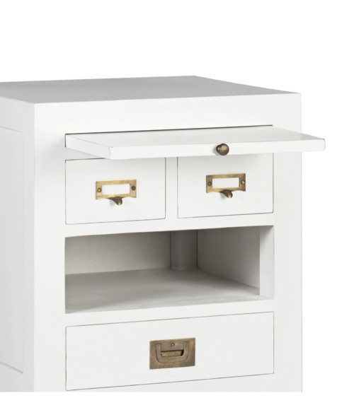 Table de chevet de la collection EVEREST fabriquée à la main en bois de mindi laqué blanc. La structure est massive et les des accessoires en bronze. L'élément-clé pour la chambre. Contient un tiroir secret où vous pourrez ranger vos biens les plus précieux. Aucun assemblage nécessaire.