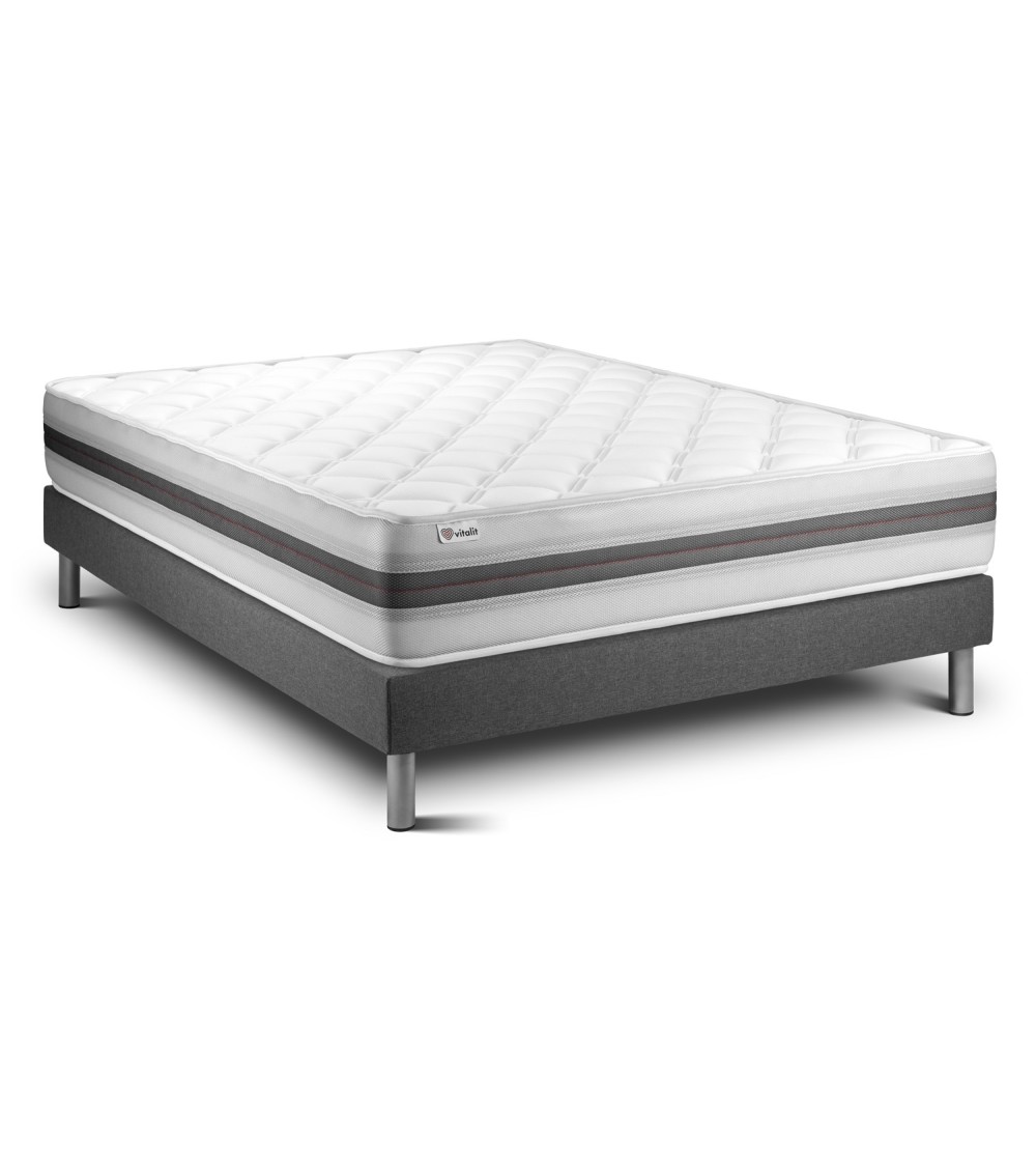 Les solutions de literie Vitalit allient confort, maintien et souplesse afin de permettre à votre corps de prendre le temps de se revitaliser pour récupérer du stress de la journée. Des matelas et sommiers pensés pour s'adapter aux spécificités corporelles et au sommeil de chacun. En partenariat avec des fabricants sélectionnés et reconnus au sein de l'Union Européenne, Vitalit garantit des produits rigoureusement élaborés selon des cahiers des charges précis. Jusqu'à la livraison, notre objectif : votre satisfaction.Le VITALMEMO BACK bénéficie des dernières innovations en matière de mousse à mémoire de forme. D'une tenue ferme, son accueil moelleux s'adapte à votre morphologie et allège les points de pression. Son tissu micro perforé garantit une aération optimisée.- Épaisseur : 25 cm- Âme 100% mousse polyuréthane Haute Densité 15 cm- Mousse polyuréthane à mémoire de forme 5 cm 55 kg- Fibres 100% Polyester 350G/M2- Plate-Bande 3D micro-aérée 100% Polyester pour optimiser l'aération du matelas- Coutil micro perforé ultra respirable 100% Polyester- Confort : Accueil moelleux Soutien ferme- 5 zones de confort- Sommier tapissier- Multi 12 lattes en peuplier massif- Structure et traverses de renfort en peuplier massif- Garnissage fibres 100% polyester 120G/M2- Tissu Maille 100% polyester 260G/M2- Toile de fond anti-poussières 100% polyester- Hauteur 14cm + Pieds acier 15cm (fournis)