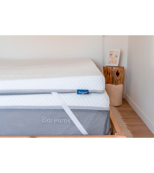 ??1ER SPECIALISTE FRANÇAIS : Bdreams® est le 1er spécialiste français de surmatelas et de confort de literie. Ce surmatelas a été conçu pour apporter un confort morphologique et inégalé. Il n'y a pas d'équivalent sur le marché. ??? SA COMPOSITION : Il est composé dune enveloppe 100% polyester, muni dun zip pour faciliter le déhoussage. Une sensation de mémoire de forme ressentie instantanément grâce à son tissu stretch. Une mousse à mémoire de forme de 6 cm, morphologique et enveloppante. Tous les surmatelas sont labélisés Oeko-Tex. Sa conception est inédite et son confort exceptionnel. Son épaisseur totale est de 6,5 cm. ?? LES AVANTAGES : Il assure lhygiène de lensemble de la literie. Ses composants assurent la bonne ventilation tout au long de la journée pour retrouver une literie toujours saine. Lenveloppe est déhoussable et lavable à froid. Il est facile à ranger et à transporter grâce au sac fourni avec le surmatelas. Le surmatelas prolonge significativement la durée de vie du matelas et permet donc de réduire votre impact environnemental. ? UNE QUALITE PREMIUM : Les matériaux ont été soigneusement sélectionnés, la fabrication contrôlée, pour assurer une qualité de sommeil et une finition haut de gamme. Il est livré enrouler pour une livraison simplifiée. ???? BDREAMS : Bdreams® est une marque et entreprise française. Le surmatelas a été fabriqué en France. Nous avons apporté tout notre savoir-faire et nos compétences pour vous assurer des nuits dans un confort inégalé.