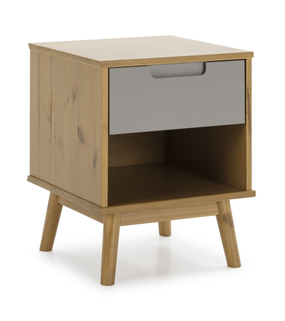 Fabriquée en bois de pin massif certifiée respectant l'environnement et finition Chêne. Pieds en bois de pin accordées à la couleur du meuble de 18cm de hauteur.1 tiroir avec guides métalliques pour une facile extraction pour profiter au maximum à l'espace de rangement. Dimension interne du tiroir: 30cm ( largeur) 32cm (profondeur) 11cm (hauteur)Structure principale en couleur chêne avec des tiroirs en gris et ouverture avec poignée allongée qui lui apportera une touche élégante au meuble avec de lignes droites et simple.Produit en kit et facil à assembler, se livre avec notice de montage et les outils pertinents pour un assemblage optimale.DIMENSIONS: 40cm largeur, 40cm Profondeur et 53cm Hauteur.