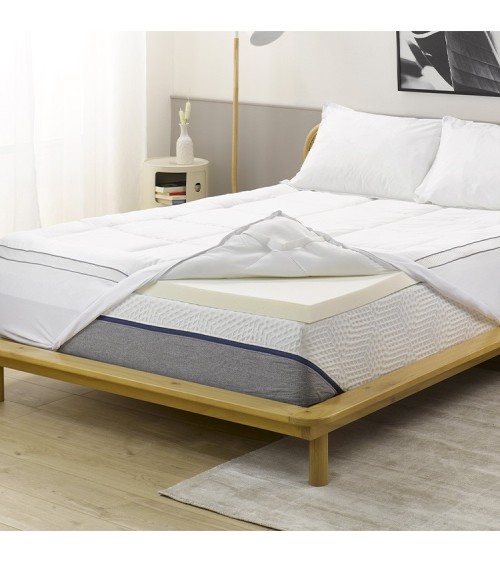 Surmatelas Oeko-Tex doté d'une mousse à mémoire de forme haute qualité et d'une housse en satin de coton, issu des meilleurs artisans français. Cette mousse haute densité est respirante et garantie longue durée. Très adaptatif, le surmatelas Duo double couche se fixe à toutes surfaces grâce à son bonnet de 45 cm ajustable