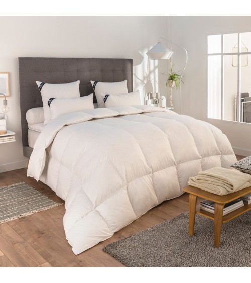 Cette couette tempérée peut convenir à la majorité des dormeurs et peut être utilisée toute l'année dans les chambres dont la température se situe entre 18 et 22°C. Elle bénéficie d'un traitement anti-acariens PRONEEM, d'origine végétale, qui assure des nuits plus saines aux personnes sujettes aux allergies.Composition du tissu : 100% satin de coton ultra doux 139 fils/cm2.Composition du garnissage :70% duvet de canard supérieur 30% plumettes