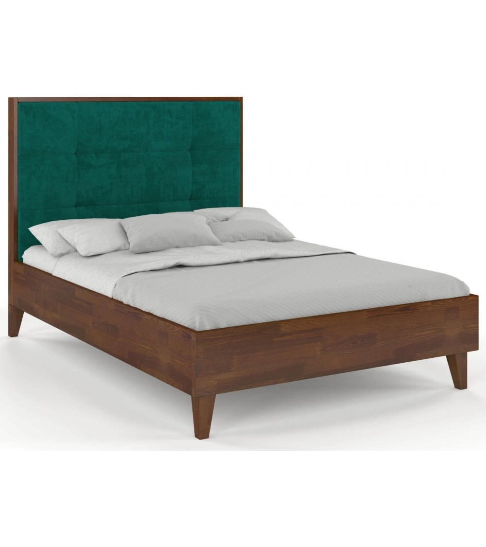 Lit avec tête de lit sommier noyer massif vert 140x200cm