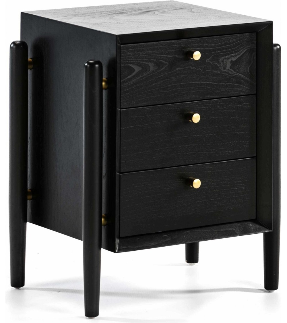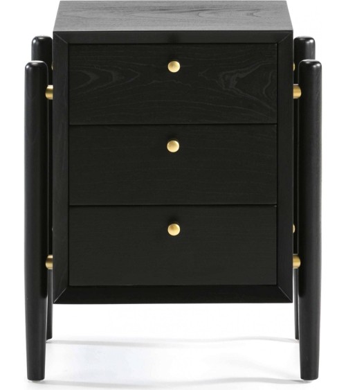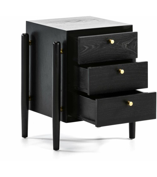 Table de chevet 3 tiroirs en bois teinté noir et doré