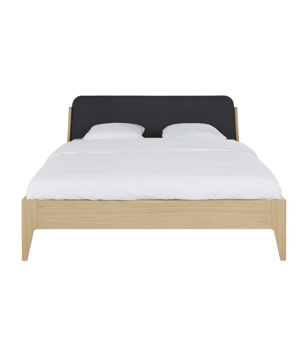 La ligne ultra-contemporaine cosy et chic du lit JORDAN 160x200 apportera beaucoup délégance à votre chambre et créera un écrin très doux pour vos nuits !Sa structure épurée en bois clair FSC est associée à une tête de lit capitonnée recouverte de tissu gris anthracite.Ce cadre de lit est adapté à un couchage de 160x200 cm.Nous vous conseillons daccompagner ce lit dun sommier à lattes (non inclus).Pour sadapter à votre vie et vos envies, ce lit est disponible en différentes dimensions.Vous aimez son style ? Ce lit existe aussi en version beige, dans un esprit sobre et naturel Pour compléter votre lit, n'oubliez pas d'ajouter un sommier : réf 171491