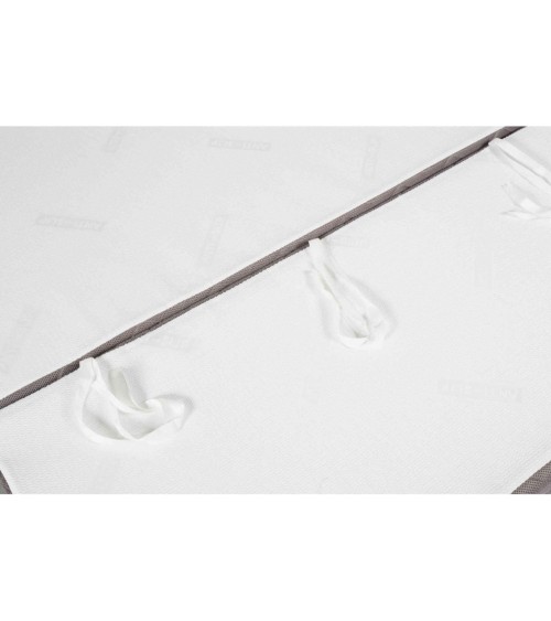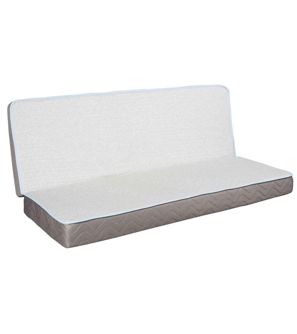 Matelas de remplacement pour banquette clic clac, au confort exceptionnel ! Mousse haute résilience pour une excellente durée de vie, et tissu ultra-doux pour un effet cocon ! De plus, il comporte 3 lacettes de fixation ainsi qu'un tissu anti-dérapant pour un parfait maintien sur votre armature de clic clac. Matelas livré seul, sans armature clic clac. Marque : SOMEO. Modèle : clic clac HR40. Technologie : mousse haute résilience (densité 40 kg/m3) Soutien : ferme. Accueil : moelleux. Epaisseur totale : 16 cm. Epaisseur cur : 15 cm. Tissu face de couchage : stretch ultra-doux 47% viscose 53 polyester (340 g/m²). Tissu de la bande de tour et face structure clic clac : 100% polyester (100 g/m²). Couleurs tissu : dessus : gris clair, dessous blanc, périmètre : gris foncé, ganse de couture : bleu céleste. 3 lacettes de fixation pour un excellent maintien. Fabrication française. Respect de la norme OEKOTEX et CERTIPUR. Article conditionné comprimé.enroulé, reprenant notamment ses pleines propriétés d'épaisseur sous 48h. Dimensions du matelas selon la taille :120x190 %3D> assise 60 cm, dosseret 60 cm, longueur 190 cm 140x190 %3D> assise 70 cm, dosseret 70 cm, longueur 190 cm, 140x200 %3D> assise 70 cm, dosseret 70 cm, longueur 200 cm