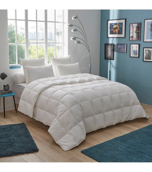 Cette couette tempérée peut convenir à la majorité des dormeurs et peut être utilisée toute l'année dans les chambres dont la température se situe entre 18 et 22°C. Ce produit de qualité, facilite l'évacuation de l'humidité pendant la nuit grâce à son garnissage de haute technologie pour plus de confort.Composition du tissu :Percale 65% polyester - 35% cotonComposition du garnissage :100% polyester CONFORLITE - fibres creuses siliconées