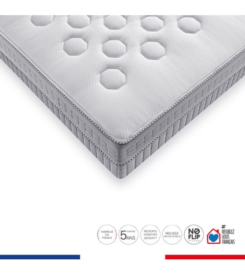 Depuis presque 90 ans, Simmons oeuvre pour vous proposer un sommeil toujours plus réparateur. Nous développons les solutions les plus adaptées car nous savons que chaque sommeil est unique. Conscient de l?importance d?un sommeil réparateur, Simmons offre le meilleur de son savoir faire en développant les technologies les plus pointues et en travaillant les matières les plus nobles. Le tout 100% Made in France ! Les modèles Simmons sont en effet travaillés à la main et assemblés avec soin dans nos usines françaises.Avec la technologie Sensoft, peu importe votre morphologie, nos ressorts vous assurent une indépendance de couchage optimale. Suspension : ressorts ensachés Sensoft Origine Ceinture de maintien en mousse de polyéther : indéformabilité garantie. Face de couchage : Plateau piqué ouate 300gr/m2 et Laine : 200gr/m2. Garnissage mousse de confort 10mm, densité 22 kg/m3.504 ressorts ensachés Sensoft Origine (pour un couchage dimension 140x190 cm)588 ressorts ensachés Sensoft Origine (pour un couchage dimension 160x200 cm) Face technique : Ouate polyester 150gr/m2 et coutil aération 100% polyester. Coutil : Stretch 100% polyester, fibre hydrophobe qui n?absorbe pas l?eau et l?humidité. Fabriqué en France. Garantie 5 ans. Chaque ressort est introduit individuellement dans un sachet en non tissé, un matériau hypoallergénique, aéré, bactéricide et de haute résistance. Soudés par ultrasons, les ressorts ensachés sont liés entre eux sur les côtés et non en surface. Une parfaite indépendance de couchage, dans toutes les positions pour que chacun profite du plus doux des sommeils !
