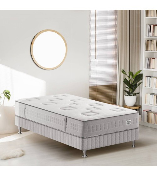 Depuis presque 90 ans, Simmons oeuvre pour vous proposer un sommeil toujours plus réparateur. Nous développons les solutions les plus adaptées car nous savons que chaque sommeil est unique. Conscient de l?importance d?un sommeil réparateur, Simmons offre le meilleur de son savoir faire en développant les technologies les plus pointues et en travaillant les matières les plus nobles. Le tout 100% Made in France ! Avec la technologie Sensoft, peu importe votre morphologie, nos ressorts vous assurent une indépendance de couchage optimale. Convient parfaitement aux personnes sensibles aux problèmes de dos. Soutien : Très Ferme Accueil : Tonique Epaisseur du matelas : 24 cm. Suspension : ressorts ensachés Sensoft Origine Ceinture de maintien en mousse de polyéther : indéformabilité garantie. Face de couchage : Mousse à mémoire 10 mm, densité 40kg/m3. Plateau piqué éco laine 200gr/m2, ouate 150gr/m2 + mousse de confort 10mm, densité 22 kg/m3. Mousse d?accueil 10 mm 10 mm, densité 26 kg/m3532 ressorts ensachés Sensoft Origine (pour un couchage dimension 140x190 cm)660 ressorts ensachés Sensoft Origine (pour un couchage dimension 160x200 cm) Face technique : Ouate polyester 300gr/m2 et coutil aération 100% polyester. Coutil : Stretch 100% polyester, fibre hydrophobe qui n?absorbe pas l?eau et l?humidité. Fabriqué en France. Garantie 5 ans. Ce matelas dispose de 4 poignées verticales pour faciliter la mise en place. L?ensemble des matelas Simmons sont garantis 5 ans. Faut-il changer le matelas et le sommier en même temps ?Bien entendu! Un matelas neuf sur un vieux sommier va se dégrader rapidement, car celui ci ne va pas assurer sa part dans la fonction de suspension. Il faudra le remplacer au bout de 5 ans au lieu de 10 ans. C?est une économie qui coûte cher !