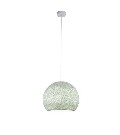 Coupole M suspension simple, pavillon plastique cylindrique, fils tissés (80 cm), fils réglables. Etoiles de fixation universelles fournies (compatible douille E27). 1 ballon et 1 spray pour la remise en forme de la coupole. Ampoules non fournies.
