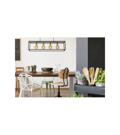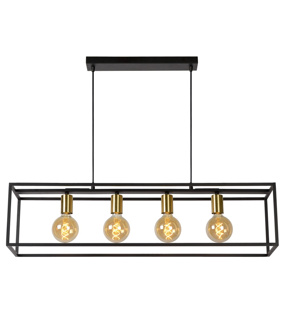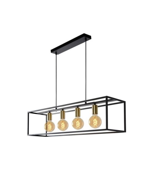 Cette suspension lumineuse Led est en métal noir avec des douilles en laiton .La suspension Ruben fonctionne avec 4 ampoules E27 40 W maximum, non fournies, ce qui vous permet de choisir température de couleur et intensité lumineuse de votre éclairage selon vos goûts.Vous aimerez les lignes sobres de cette suspension intérieure conçue par la maison Lucide, spécialiste belge du luminaire depuis plus de 25 ans.Elle est en métal noir mat qui se mariera parfaitement avec une décoration de style industriel.Les douilles en laiton rajoutent une touche de sophistication à l'esthétique minimaliste de la suspension Ruben. Ce luminaire éclairera efficacement votre pièce à vivre. Avec ses dimensions imposantes et ses 4 points lumineux, il conviendra parfaitement au.dessus d'une grande table de salle à manger rectangulaire ou de l'ilot central de votre cuisine. Afin de renforcer l'esthétique industrielle de cette suspension, nous vous conseillons d'utiliser des ampoules à filament. La gamme Ruben vous propose également une applique murale, une suspension et une lampe de sol.