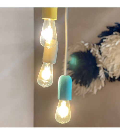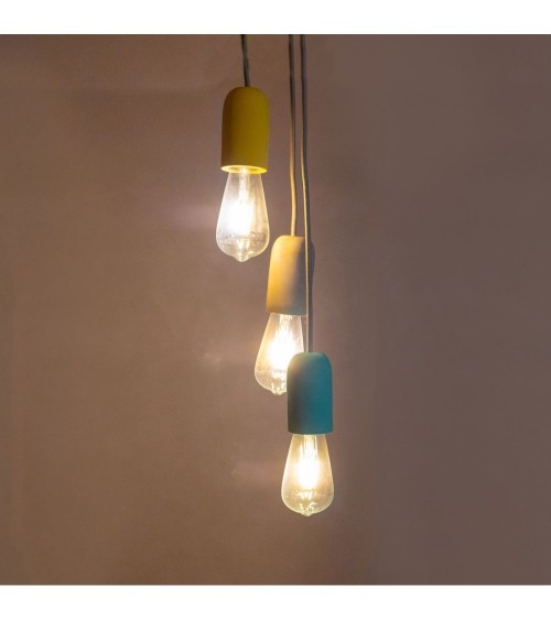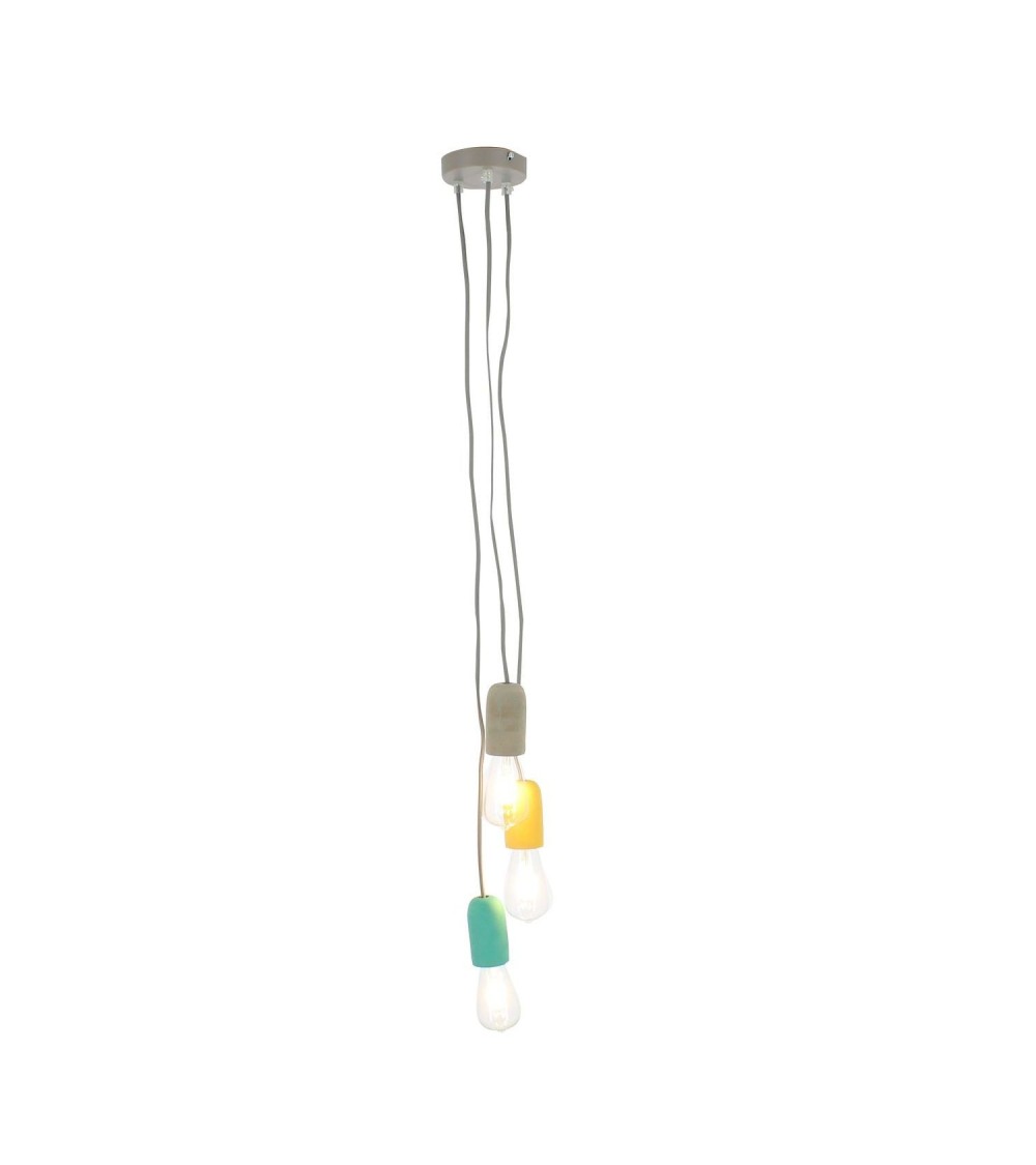 Enlevez le superflu et ne gardez que l'essentiel avec la suspension béton LOFT. Inspiré de la tendance industrielle, ce luminaire multiple à 3 ampoules souligne la beauté d'une ampoule nue, avec son dessus en béton de couleur. Le détail déco - ses couleurs peps apporteront de la gaieté dans votre intérieur. Ampoule incluse (3 ampoules E27, 220V, 4W) Cette Suspension apporte une touche d'originalité et de modernité à votre intérieur Ce luminaire est inspiré par la tendance industrielle avec son look aspect béton Cette suspension est composée de plusieurs couleurs - jaune, gris et bleu/vert Longueur du cable - 100 cm Les dimensions de la suspension sont de Ø 15 x 130 cm . Ampoules incluses à l'achatNettoyer à l'aide d'un chiffon sec