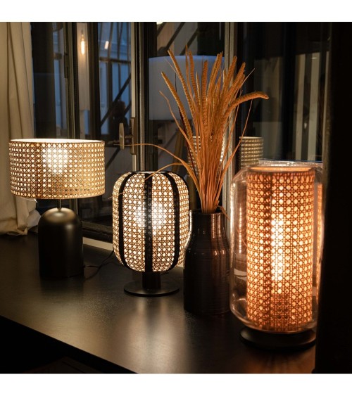 Le mariage parfait entre l'exotisme du cannage naturel et la modernité du métal noir, découvrez sans plus attendre cette belle lampe à poser de la collection NEST. A la fois contemporaine et bohème, on adore son abat.jour ajouré qui vous procurera un rendu lumineux hyper tendance. Idéale sur une commode dans une entrée ou dans un salon proche du canapé, cette lampe à poser trouvera aussi sans aucun doute sa place dans votre chambre en guise de lampe de chevet pour une ambiance cocooning assurée. Luminaire équipé d'une douille E27 compatible avec une ampoule d'une puissance maximale de 40W (ampoule non incluse). Dimensions - hauteur 31cm x diamètre 20cm. Existe également dans la même collection NEST en version lampadaire, applique murale ou suspension. Les plus du produit - Matière naturelle . Effets lumineux . Ampoule à personnaliser Caractéristiques - . Douille - E27 . Puissance - 40W . IP - 20 . Matière - canage