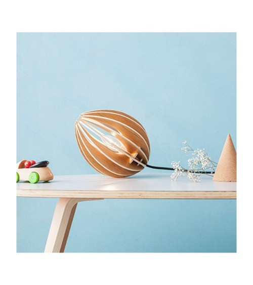 La lampe Fève à poser chêne de Gone's, marque décorative écoresponsable, est entièrement conçue et fabriquée en France, à partir de bois nobles de qualité ébénisterie. Dans un style design scandinave, ce luminaire diffusera une lumière apaisante. La Fève révèle la qualité du made in France avec une originalité. Cordon textile noir.