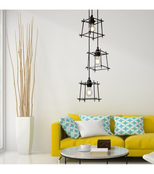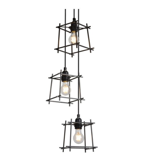 Un charme 100 pour cent moderne avec cette belle suspension cascade EDGAR ! Conçue en métal noir, cette suspension possède 3 points lumineux avec une structure ajourée qui vous procureront une lumière chaleureuse et de beaux jeux d'ombres sur vos murs une fois la nuit tombée. Hyper tendance, la suspension cascade EDGAR marie parfaitement le style minimaliste et la touche industrielle complètement moderne du métal. Ce luminaire trouvera sans aucun doute sa place dans votre aménagement intérieur - dans une montée d'escalier avec une belle hauteur sous plafond, dans un salon pour une lumière cocooning ou bien au.dessus de votre table à manger pour illuminer vos moments de partage. Notre astuce déco - optez pour des ampoules avec filaments pour donner une touche vintage à votre suspension. Luminaire équipé de trois douilles E27 compatibles avec 3 ampoules d'une puissance maximale de 40W chacune, soit 3x40W (ampoules non incluses). Dimensions - hauteur minimale 36cm x hauteur maximale 147cm x diamètre abat.jour 17cm. Hauteur réglable. Existe également dans la même collection EDGAR en version suspension simple. Les plus du produit - Matériau résistant . 3 sources lumineuses . Ampoule à personnaliser Caractéristiques - . Douille - E27 . Puissance - 40W . IP - 20 . Matière - metal
