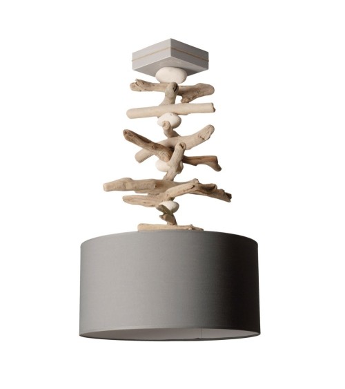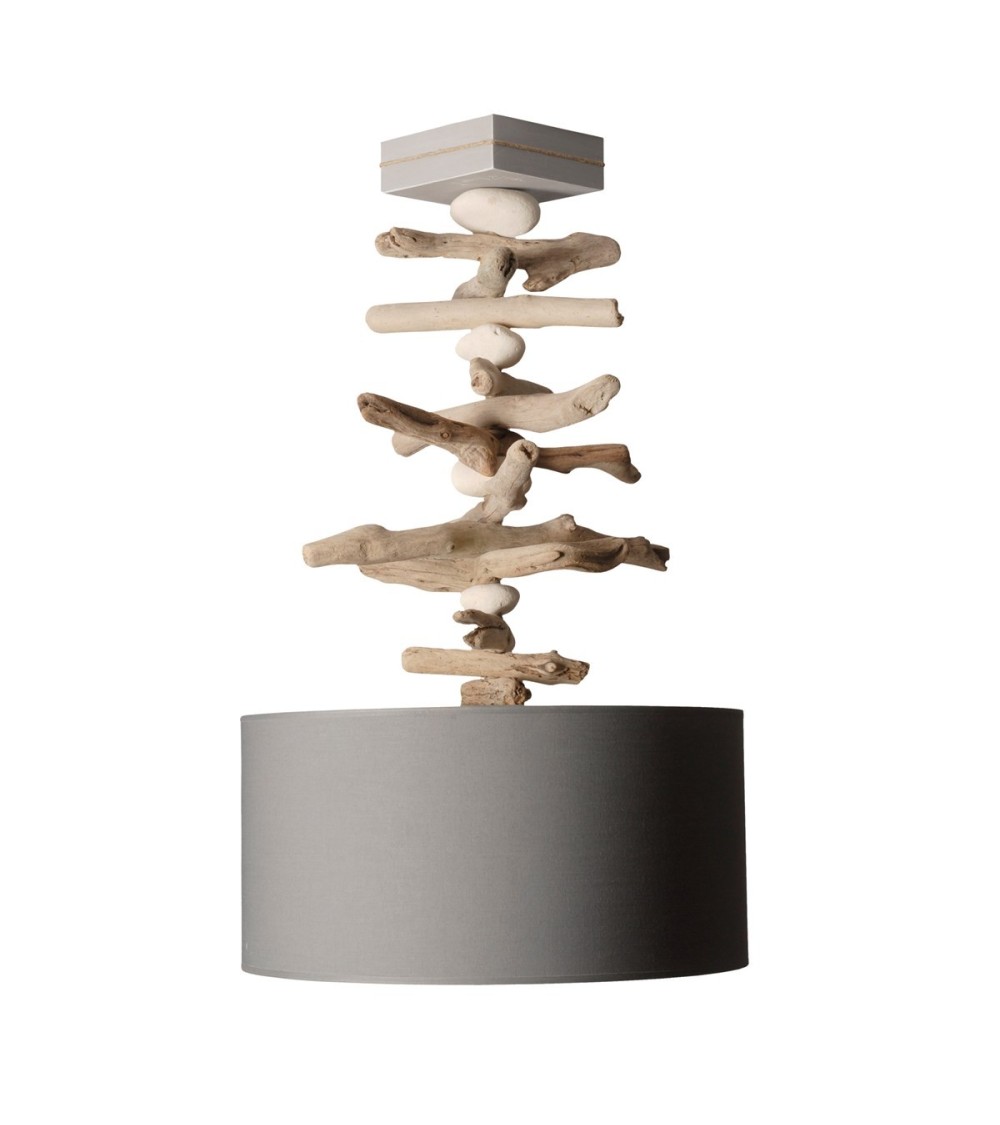 La suspension en bois flotté et galets ESPRIT DE LAGON, originale et élégante avec son abat.jour en cotonette cylindrique de 40 cm de diamèrtre est équipé d'un diffuseur opalescent pour créer un éclairage harmonieux et chaleureux, son pavillon de fixation est en panneau de fibre peint à la main et assorti à la couleur de l'abat.jour, la tige est constituée de galets et de bois flottés alternés. La hauteur totale de la suspension est de 65 cm.La douille E27 nécessitera une ampoule LED de 11 watt maximum non fournie.Ce luminaire donnera un style bord de mer à votre intérieur, et trouvera aussi bien sa place dans une entrée, un couloir, un salon, une salle à manger que dans une chambre.CocArt Créations, est une marque française de luminaires dinspiration bord de mer, fabriqués à la main en France dans l'atelier Blésois, à partir de matériaux recyclés tels que les bois flottés.Notez qu'il peut y avoir quelques différences entre les visuels proposés et la lampe que vous recevrez. La fabrication artisanale confère un caractère unique à chaque création.Toutes les lampes créées par CocArt Créations sont des luminaires de classe II, pourvus de matériels électriques marqués CE. Ils sont équipés disotop, dembouts de protection, ou disodom conformément à la norme EN 60598.