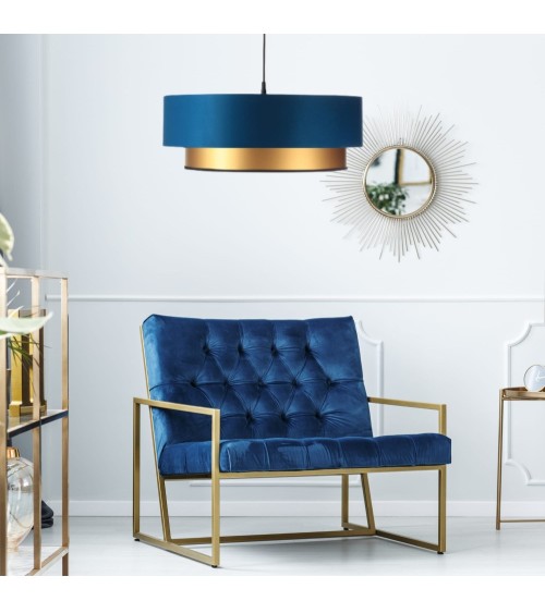 Double suspension déco en coton bleu canard et or la suspension lunor offre un éclairage homogène avec son double abat.jour de couleur or qui ajoute beaucoup délégance.