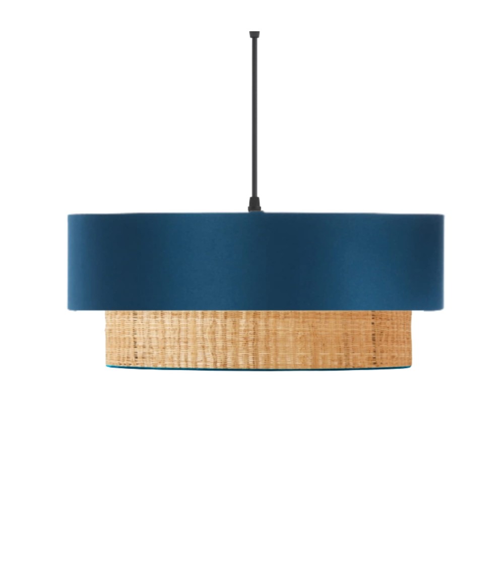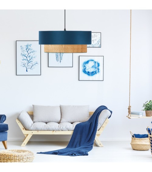La suspension déco fidji en raphia et coton bleu canard illuminera votre intérieur en diffusant une lumière douce et homogène.