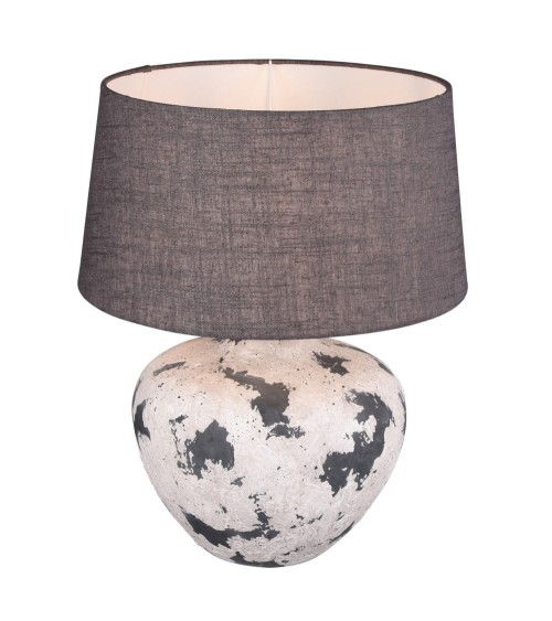 Apportez une touche de nature dans votre intérieur avec cette superbe lampe à poser BAY. Son pied conçu en céramique blanche et grise se marie parfaitement avec son abat.jour en tissu gris. Ce mélange des matières apportera à votre décoration intérieure un charme authentique et une ambiance hyper chaleureuse. Intemporelle et tendance, cette lampe à poser est idéale sur un guéridon dans un salon ou une salle à manger pour un éclairage original tout en restant sobre, ou bien sur une commode dans une entrée par exemple. La lampe BAY sera tout aussi parfaite dans une chambre à coucher en guise de lampe de chevet pour instaurer une atmosphère douce et cocooning. Luminaire équipé d'une douille E27 compatible avec une ampoule d'une puissance maximale de 60W (ampoule non incluse). Dimensions - hauteur 46cm x diamètre 38cm. Câble de 30cm jusqu'à l'interrupteur, puis 120cm jusqu'à la prise. Les plus du produit - Matière naturelle . Effets lumineux . Ampoule à personnaliser Caractéristiques - . Douille - E27 . Puissance - 60W . IP - 20 . Matière - ceramic