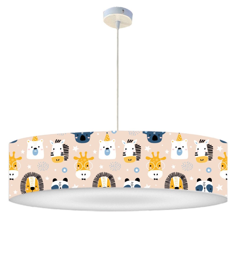 Produits à usage professionnels et particuliers. La suspension enfant est un luminaire parfait pour éclairer la chambre ou la salle de jeu de votre enfant. De la gamme kids, cette suspension est imprimée en pastel avec des motifs , elle est fabriquée en tissus de qualité HD. La suspension est fournie avec un diffuseur pour tamiser la lumière ainsi qu'un câble d'alimentation de 80cm de long en blanc. Elle a un diamètre de 50cm et une hauteur de 25cm. Pour l'éclairer, vous aurez besoin d'une ampoule munie d'un culot E27. Il convient également de noter que la suspension est destinée à un usage intérieur uniquement.