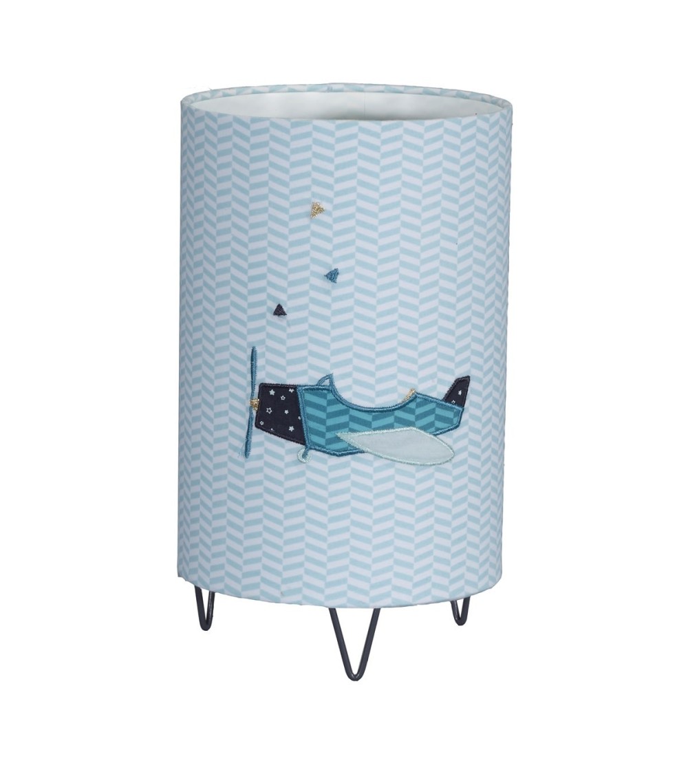 Luminaire Lazare Lampe à poser ronde Lazare avec structure métallique. Une application avion est cousu sur l'abat.jour.Détails du produit-Tissu 100 pour cent coton.Armature en métal et douille et interrupteur monté.Dimensions- D 15cm x H 25,5 cmConseils d'entretien-Epousseter avec un chiffonSauthon, entreprise française spécialiste de la puériculture développe pour vous des chambres de bébé depuis 1948!