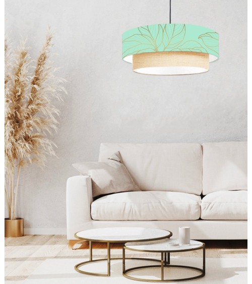 Produits à usage professionnels et particuliers. La suspension double Feuille et raphia est idéale pour les pièces comme le salon, la salle à manger ou la chambre. Elle se compose d'un grand abat.jour de 65cm de diamètre et 25cm de hauteur, ainsi que d'un second abat.jour en raphia de 50cm de diamètre et 30cm de hauteur. La hauteur totale de la suspension est de 30cm. Elle est fournie avec un diffuseur pour masquer l'ampoule et un câble d'alimentation de 100cm de long. Cette suspension est destinée à un usage intérieur.