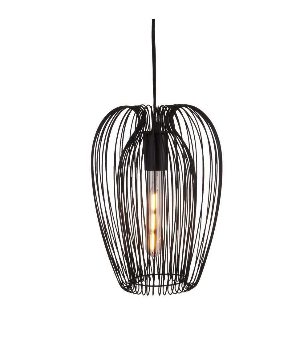 Suspension en métal noir de 33cm de hauteur. Le double passage des formes métalliques créera une ambiance cosy aux ombres parfaites ! A mélanger avec le modèle XL afin de créer un design unique. Dimensions - H. 33cm, D. 22cm Matière - métal Ampoule E27 . 40W (non fournie)