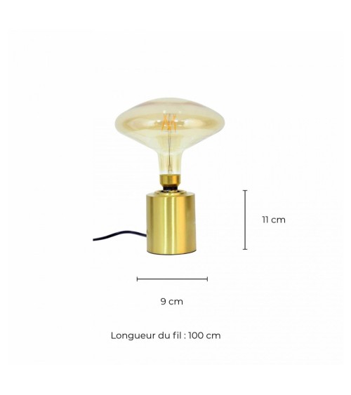 Belle lampe à poser ronde en métal doré. Idéale pour mettre en valeur une belle ampoule filaments (non fournie). Dimensions- diamètre 9cm x Hauteur 11cm . Couleur- Doré Matière- Métal . Ampoule- E27/60W (Non fournie)