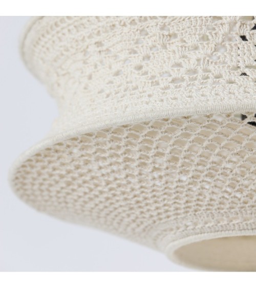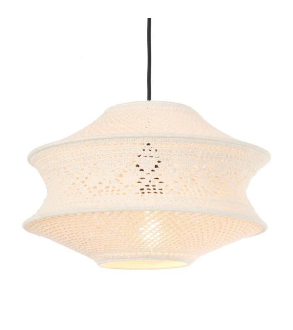 Laissez.vous charmer par cette belle suspension de la collection TARIDA. Fabriquée en corde naturelle de couleur blanc cassé, cette suspension arbore un style bohème tout en élégance que vous pourrez marier avec une décoration ethnique ou plutôt bord de mer selon vos envies. Ce luminaire tendance apportera sans aucun doute un vent de fraîcheur dans votre aménagement intérieur ! Idéale dans votre salon pour instaurer une ambiance cocooning, cette suspension TARIDA trouvera également parfaitement sa place dans votre chambre pour un éclairage chaleureux et tamisé. Luminaire vendu sans pendel donc sans électrification. Dimensions - hauteur 27cm x diamètre 40cm. Existe également dans la même gamme TARIDA en version 37cm de hauteur.. LES + DU PRODUIT - Matière naturelle . Lumière tamisée . Effets lumineux