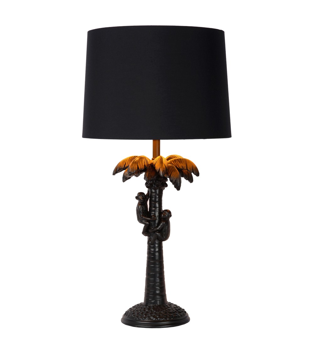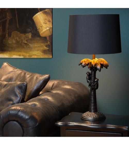 Apportez une touche d'exotisme à votre décoration intérieure avec cette belle lampe à poser COCONUT ! Conçue dans une structure en plastique noir en forme de palmier, elle possède un abat.jour en tissu noir pour vous procurer au quotidien un éclairage tendance et chaleureux. On adore - le détail des petits singes accrochés à leur arbre ! Cette lampe à poser égayera sans aucun doute votre aménagement avec son charme authentique et son look audacieux. Idéale dans un coin de votre salon pour instaurer une ambiance lumineuse moderne et originale, elle sera également parfaite dans une entrée sur une commode pour un éclairage plus fonctionnel ou bien dans votre salle à manger pour illuminer vos moments de partage entre amis ou en famille. Luminaire équipé d'une douille E27 compatible avec une ampoule d'une puissance maximale de 40W (ampoule non incluse). Dimensions - hauteur 57.5cm (hauteur non réglable) x hauteur abat.jour 20cm x diamètre abat.jour 30.5cm x longueur câble 150cm. Interrupteur sur câble d'alimentation. Existe également dans la même collection COCONUT en version coloris doré avec abat.jour vert foncé. Les plus du produit - Matériau résistant . Effets lumineux . Ampoule à personnaliser Caractéristiques - . Douille - E27 . Puissance - 40W . IP - 20 . Matière - pvc_synthetic