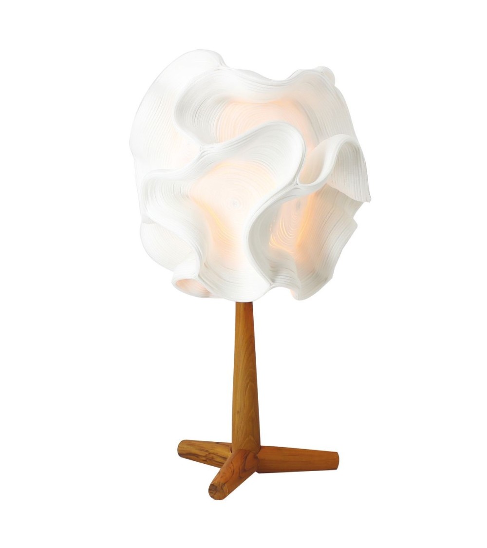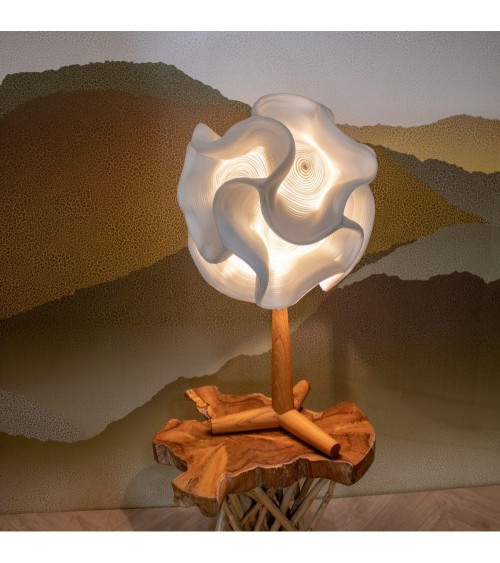 Quelle magnifique lampe à poser, harmonieux mélange d'artisanat et de matériaux inattendus tels que plastique, teck et métal qui apportera, à n'en pas douter, une touche d'originalité et d'élégance à votre intérieur. Information sur la composition - Le teck produit un bois précieux et imputrescible recommandé pour la fabrication des ponts de bateaux, de meubles de jardin. Pied en bois de teck abat jour réalisé avec des fermetures éclaires blanches cousues à la main Design ONG CEN KUANG Longueur cable électrique - 180cm Hauteur pied- 30cm Utiliser un chiffon humide