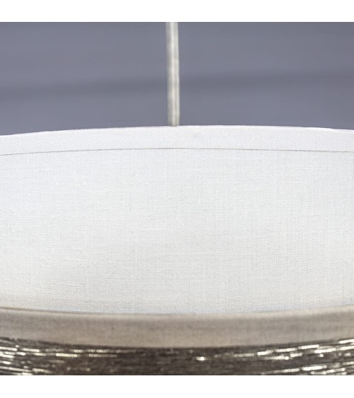 Suspension argenté à triple abat-jour en lin, diamètre 40 cm