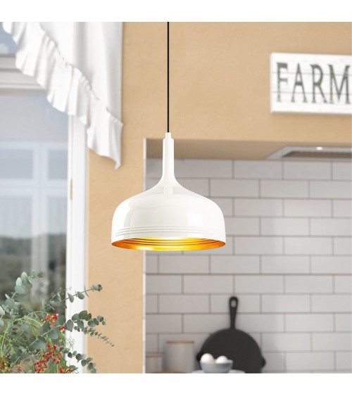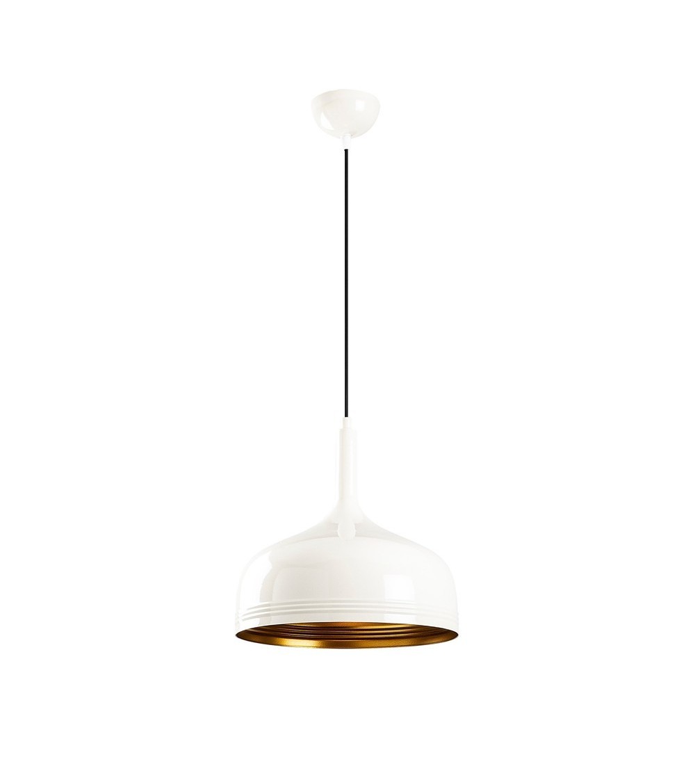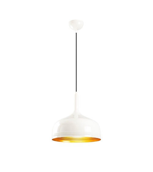 Suspension avec abat-jour en métal blanc et détails dorés