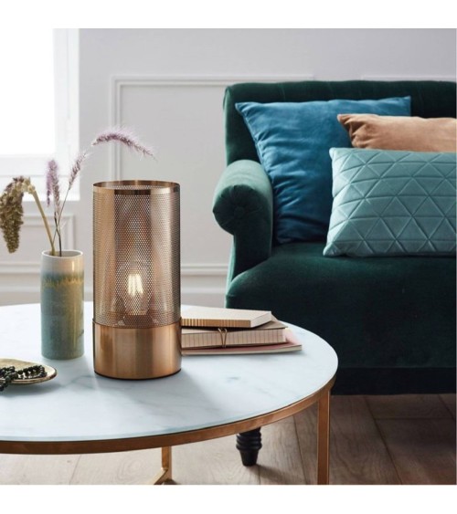 Lampe à poser de la collection Gracian, composée d'une base ronde et d'un diffuseur cylindrique en métal perforé.Ce modèle est équipé d'un cordon d'alimentation avec prise de secteur et interrupteur.Élégante et graphique, la collection Gracian se décline en différents modèles.Ampoule - 1x40W E27 (non fournie).