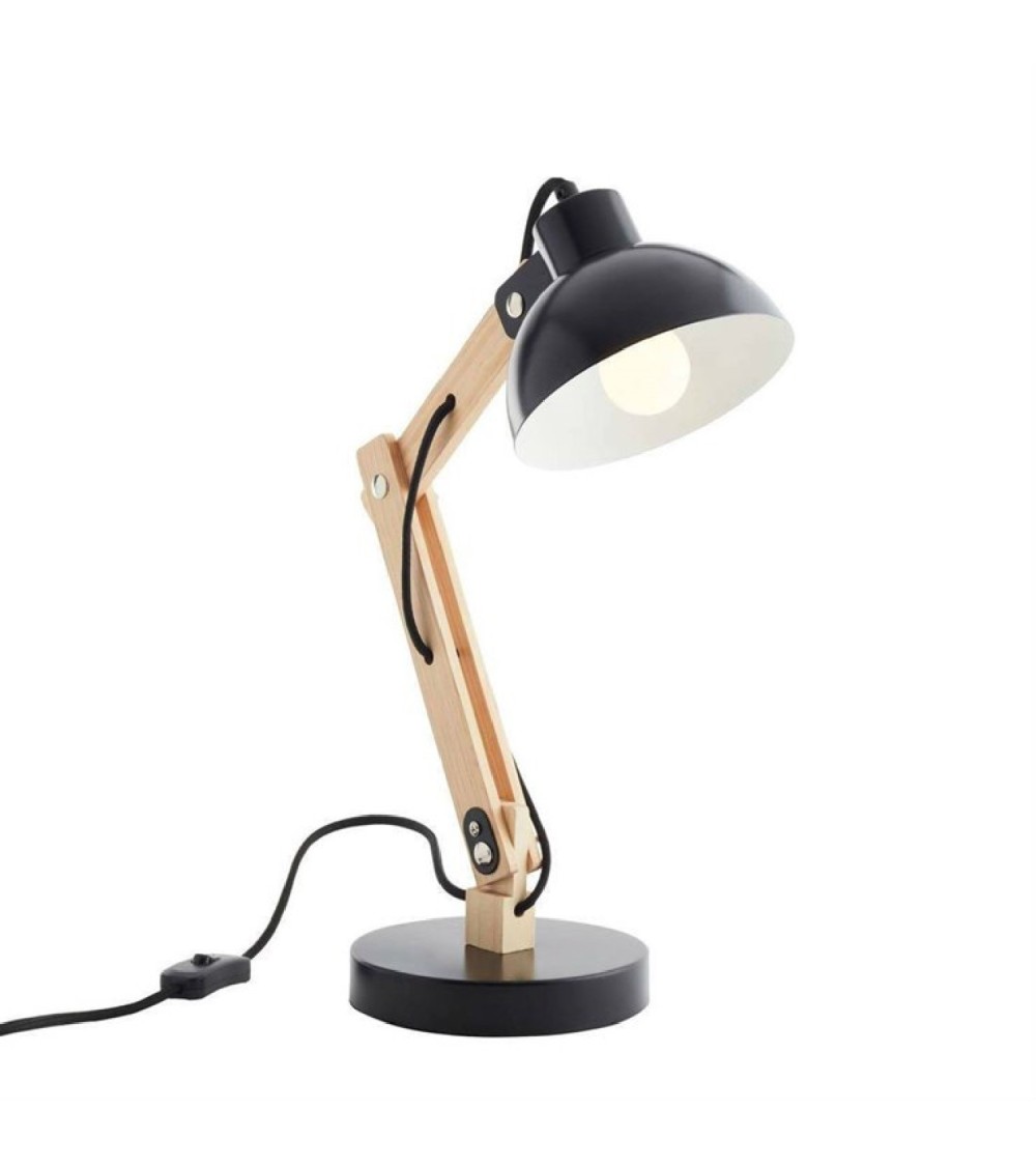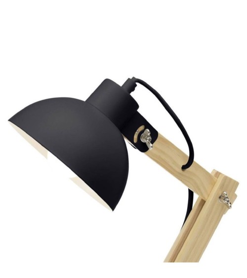 Lampe à poser de la collection Moda, composée d'une base métallique ronde, d'un double bras articulé en bois naturel et d'un abat.jour coupole orientable en acier.Ce modèle est équipé d'un cordon d'alimentation avec prise de secteur et interrupteur.Élégante avec son style scandinave, la collection Moda se décline en différentes finitions.Ampoule - 1x40W E27 (non fournie).