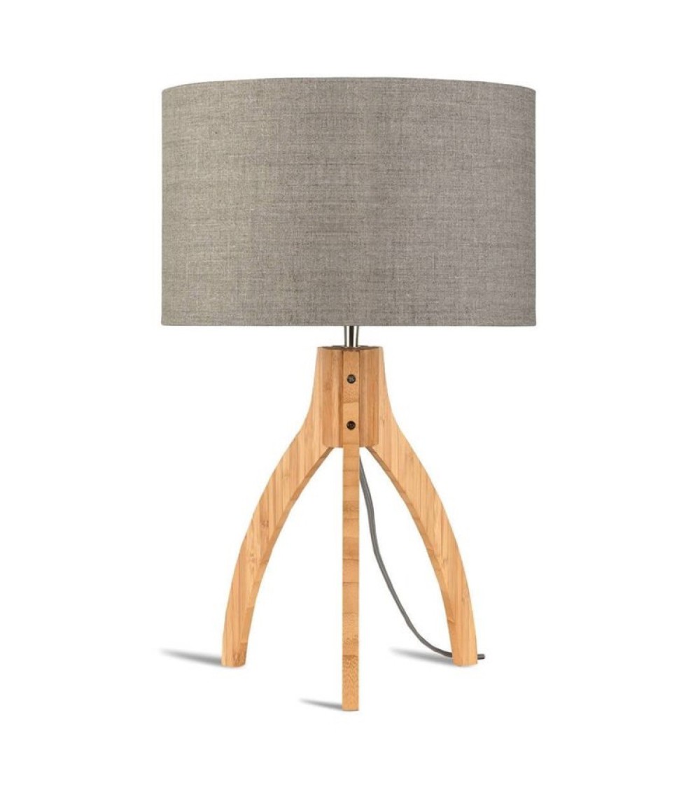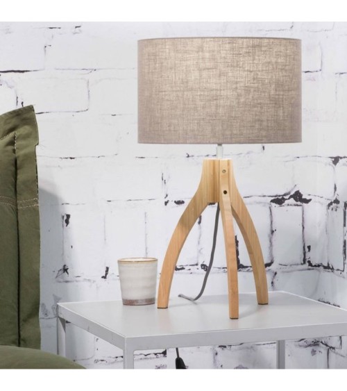 Lampe à poser de la collection Annapurna éditée par Good & Mojo composée d'un pied tripode en bambou naturel et d'un abat.jour de forme cylindrique habillé de lin ; ce modèle est équipé d'un cordon d'alimentation avec prise de secteur et interrupteur.Les luminaires Good & Mojo sont issus du commerce équitable. Pour tout achat d'un luminaire, la marque propose l'opération - une lampe achetée, un arbre planté et 5 pour cent du prix du luminaire est reversé à l'association Waka Waka qui fournit des lampes solaires aux populations n'ayant pas accès à l'électricité.La collection Annapurna se décline en deux modèles (lampadaire et lampe à poser) proposés en différents coloris.Ampoule - 1x40W E27 (non fournie).