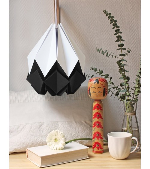 La suspension HANAHI est inspirée des techniques de l'origami et apporte de la légèreté à votre espace. Cet abat.jour aux lignes géométriques douces se combine parfaitement avec différents styles et atmosphères.Cette belle suspension pliée à la main trouvera facilement sa place dans un salon ou dans nimporte quelle pièce avec une belle hauteur sous plafond. Cela vous aidera à créer une atmosphère chaleureuse et confortable. Nos suspensions HANAHI sont faites en PAPIER de haute qualité, sans acides, produit en France avec des fibres végétales issues de lexploitation responsables des forêts (labelle FSC®).Le papier, matériau recyclage par excellence, correspond entièrement à notre démarche de développement durable ! Et cest exactement pour cette raison que notre papier nest pas traité anti.feu ou imperméabilisé. Ces traitements empêchent le recyclage à 100 pour cent du papier et sont très nocifs. Lutilisation de ce genre de produits chimiques est contraire à notre philosophie et engagement pour lenvironnement. Nos suspensions en papier sont à utiliser à lintérieur et de préférence dans des pièces peu humides. Et surtout uniquement avec des ampoules LED. Le câble électrique n'est pas fourni avec la suspension. Les suspensions Hanahi sont à utiliser uniquement avec des ampoules LED. Douille E27. Lampoule nest pas fournie.Vous recevez le luminaire HANAHI déjà monté et prêt à être installé avec des instructions. Le luminaire est conçu pour être utilisé avec une ampoule LED. Nos luminaires origami sont très faciles à nettoyer. Vous pouvez utiliser soit un plumeau ou de l'air comprimé, dès qu'à partir d'au moins 30 cm de distance.