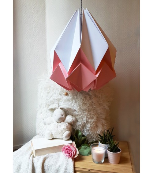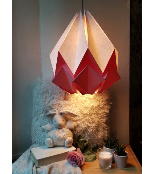 La suspension HANAHI est inspirée des techniques de l'origami et apporte de la légèreté à votre espace. Cet abat.jour aux lignes géométriques douces se combine parfaitement avec différents styles et atmosphères.Cette belle suspension pliée à la main trouvera facilement sa place dans un salon ou dans nimporte quelle pièce avec une belle hauteur sous plafond. Cela vous aidera à créer une atmosphère chaleureuse et confortable. Nos suspensions HANAHI sont faites en PAPIER de haute qualité, sans acides, produit en France avec des fibres végétales issues de lexploitation responsables des forêts (labelle FSC®).Le papier, matériau recyclage par excellence, correspond entièrement à notre démarche de développement durable ! Et cest exactement pour cette raison que notre papier nest pas traité anti.feu ou imperméabilisé. Ces traitements empêchent le recyclage à 100 pour cent du papier et sont très nocifs. Lutilisation de ce genre de produits chimiques est contraire à notre philosophie et engagement pour lenvironnement. Nos suspensions en papier sont à utiliser à lintérieur et de préférence dans des pièces peu humides. Et surtout uniquement avec des ampoules LED. Le câble électrique n'est pas fourni avec la suspension. Les suspensions Hanahi sont à utiliser uniquement avec des ampoules LED. Douille E27. Lampoule nest pas fournie.Vous recevez le luminaire HANAHI déjà monté et prêt à être installé avec des instructions. Le luminaire est conçu pour être utilisé avec une ampoule LED. Nos luminaires origami sont très faciles à nettoyer. Vous pouvez utiliser soit un plumeau ou de l'air comprimé, dès qu'à partir d'au moins 30 cm de distance.