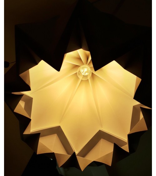 La suspension HANAHI est inspirée des techniques de l'origami et apporte de la légèreté à votre espace. Cet abat-jour aux lignes géométriques douces se combine parfaitement avec différents styles et atmosphères.Cette belle suspension pliée à la main trouvera facilement sa place dans un salon ou dans nimporte quelle pièce avec une belle hauteur sous plafond. Cela vous aidera à créer une atmosphère chaleureuse et confortable. Nos suspensions HANAHI sont faites en PAPIER de haute qualité, sans acides, produit en France avec des fibres végétales issues de lexploitation responsables des forêts (labelle FSC®).Le papier, matériau recyclage par excellence, correspond entièrement à notre démarche de développement durable ! Et cest exactement pour cette raison que notre papier nest pas traité anti-feu ou imperméabilisé. Ces traitements empêchent le recyclage à 100% du papier et sont très nocifs. Lutilisation de ce genre de produits chimiques est contraire à notre philosophie et engagement pour lenvironnement. Nos suspensions en papier sont à utiliser à lintérieur et de préférence dans des pièces peu humides. Et surtout uniquement avec des ampoules LED. Le câble électrique n'est pas fourni avec la suspension. Les suspensions Hanahi sont à utiliser uniquement avec des ampoules LED. Douille E27. Lampoule nest pas fournie.Vous recevez le luminaire HANAHI déjà monté et prêt à être installé avec des instructions. Le luminaire est conçu pour être utilisé avec une ampoule LED. Nos luminaires origami sont très faciles à nettoyer. Vous pouvez utiliser soit un plumeau ou de l'air comprimé, dès qu'à partir d'au moins 30 cm de distance.