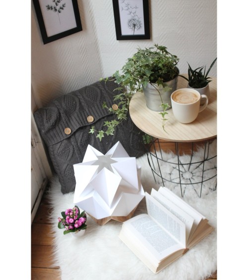 La lampe de table HIKARI marrie la technique japonaise d'Origami aux lignes géométriques et épurées du style scandinave pour apporter une ambiance chaleureuse à votre maison. Cette lampe de table trouvera facilement sa place partout où vous souhaitez créer une atmosphère paisible, confortable et relaxante. Cela vous aidera à ajouter de la douceur, de la légèreté et de la subtilité à votre intérieur. Entre lanterne et lampe sophistiquée, la forme et les matériaux utilisés permettent à la lumière de se diffuser de manière douce et apaisante, propice à la détente. DIMENSIONS 23cm diametre - 18cm de hauteurMATERIAUX EcoWood Est un placage exotique issu du recyclage de troncs de bananier. Papier Nous utilisons du PAPIER FSC® de haute qualité, sans acides, produit en France avec des fibres végétales issues de lexploitation responsables des forêts. AMPOULES Les lampes de table HIKARI sont à utiliser uniquement avec des ampoules LED. Douille E27. Lampoule nest pas fournie.LE PRODUIT Vous recevez le luminaire HIKARI déjà monté et prêt à être installé avec des instructions.Le luminaire est conçu pour être utilisé avec une ampoule ampoule LED.APRES INSTALLATION Nos luminaires origami sont très faciles à nettoyer. Vous pouvez utiliser soit un plumeau ou de l'air comprimé, dès qu'à partir d'au moins 30 cm de distance.