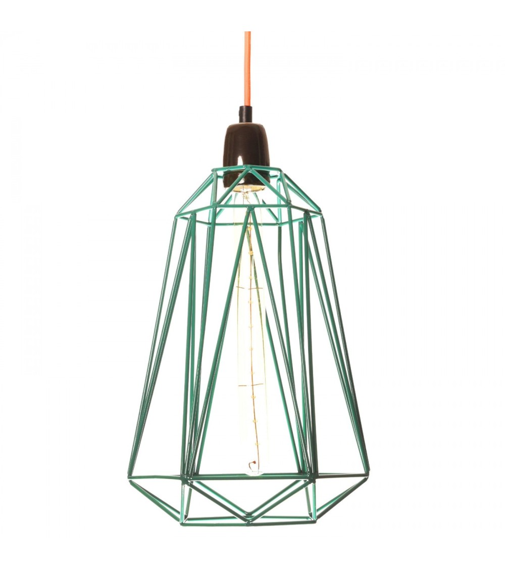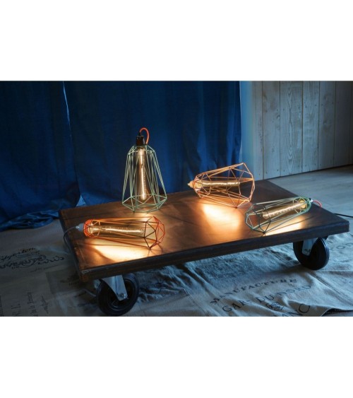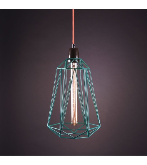 Lampe à Poser Diamond 5 créée par Filament Style. Une Cage métallique Bleue en forme de diamant six faces avec cordon électrique tissé Orange.La lampe Diamond 5 livrée avec ampoule vintage à filament et douille en porcelaine est à poser sur l'une des faces de la cage diamant.Hauteur 39 cm x 21 cmUtilisable en suspensionFilament Style un look Industriel contrasté qu'on aime ! - Contenu : Livré avec un câble électrique de 3 m avec prise et interrupteur - Douille E27 en porcelaine - 1 ampoule vintage 40 W 160 Lumen - Utilisation : Livré avec rosace de fixation pour utilisation en suspension