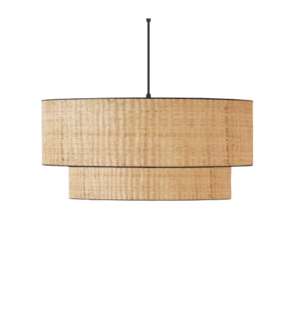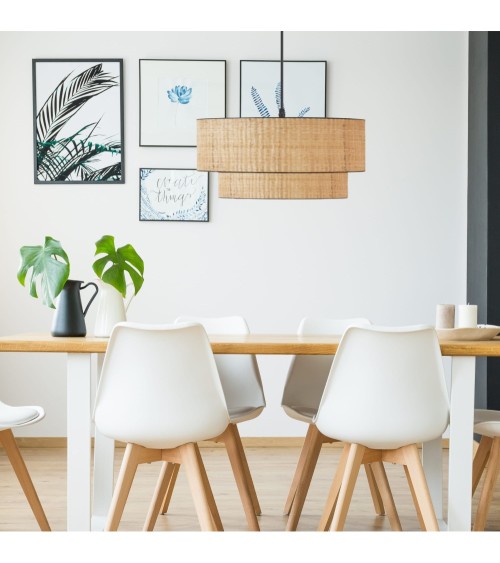 Suspension déco en raphia naturel ornée d'un fin liseré de couleur aux choix de bleu canard et ou de noir pour un rendu chic.