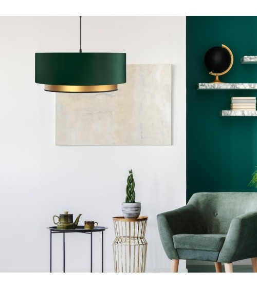 La suspension moma assure un éclairage déco chic avec son double abat-jour de couleur or qui donne baucoup délégance.