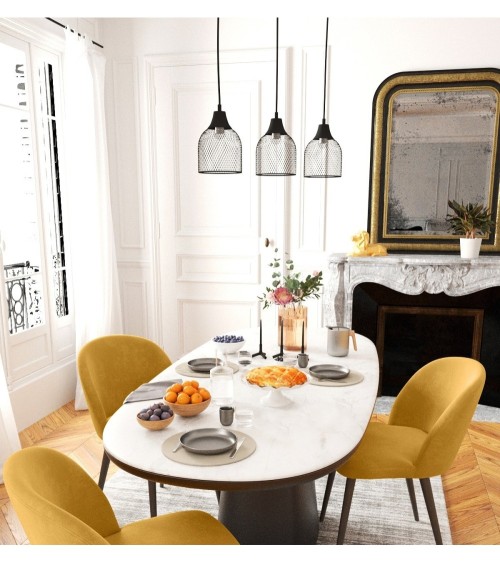 Luminaire triple suspension industrielle en métal noir, VilladoroOn a craqué pour ce luminaire design en métal noir et son look industriel ultra tendance?! Prête à conquérir votre salle à manger ou votre cuisine, la suspension à triple abat-jour Villadoro démarquera votre intérieur avec son élégance stylée.Métal noirDiamètre abat-jour : 14 cm x 19 cmLongueur maximale : 120 cmLa triple suspension Villadoro signe votre agencement intérieurLe luminaire dintérieur design dans la maison, cest un vrai sujet que Potiron prend au sérieux. Graine de style que tout le monde voit en entrant, votre suspension à trois lampes est le reflet et de votre sens pratique, et de votre goût en matière de tendance. La praticité, parlons-en avec la suspension Villadoro et ses 3 abat-jour en métal. Cette dernière est idéale pour obtenir un éclairage général dans une grande pièce, avec une lumière de bonne qualité. Avec cette suspension triple, les repas en famille et entre amis sont agréables, personne ne se demande où est passée la soupière. Vous pouvez donc la privilégier au-dessus de la table à manger ou de lîlot de votre cuisine américaine, elle y est parfaite.Suspension design en métal ajouré noir, ambiance factory garantieLa suspension à trois lampes Villadoro affiche son style et en distribue tout autant à votre pièce. Elle simpose ainsi comme un véritable atout décoratif, avec un plus : réglable en hauteur, vous pouvez la rabaisser pour obtenir une atmosphère de caractère, accueillante et pleine de cachet. Ce luminaire suspension au design industriel rétro fait forte impression au-dessus de la table mange-debout et des tabourets de bar, mais pas seulement. Il contribue à scénographier un espace de détente moderne et tendance, par exemple fauteuils et billard, canapé et table basse. Associé à quelques éléments de métal noir, étagère murale, miroir, table dappoint, le rendu loft est impeccable.