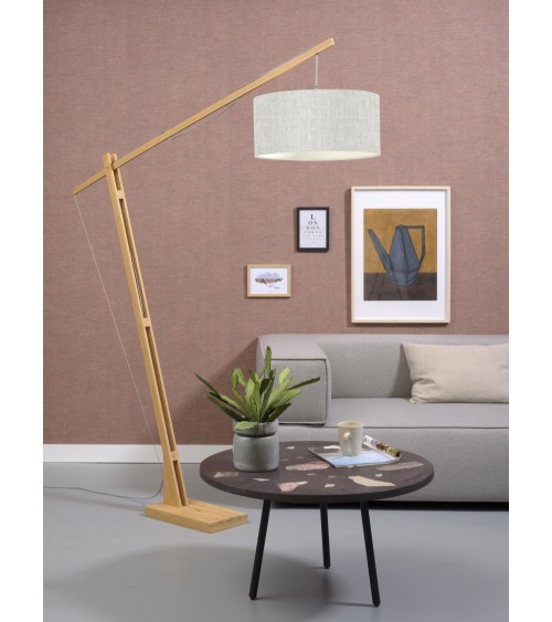 Lampadaire de la collection Mont Blanc éditée par Good & Mojo composé d'une base et d'un pied en bambou naturel et d'un abat-jour cylindrique habillé de lin, Mont blanc est équipé d'un cordon d'alimentation avec prise de secteur et interrupteur.Un lampadaire résolument design et responsable qui agrémentera votre interieur d'une lumière douce et tamisée.Les luminaires Good & Mojo sont issus du commerce équitable. Pour tout achat d'un luminaire, la marque propose l'opération : une lampe achetée, un arbre planté et 5% du prix du luminaire est reversé à l'association Waka Waka qui fournit des lampes solaires aux populations n'ayant pas accès à l'électricité.Le lampadaire Mont Blanc est décliné en différents coloris d'abat-jours.Ampoule : 1x40W E27 (non fournie).