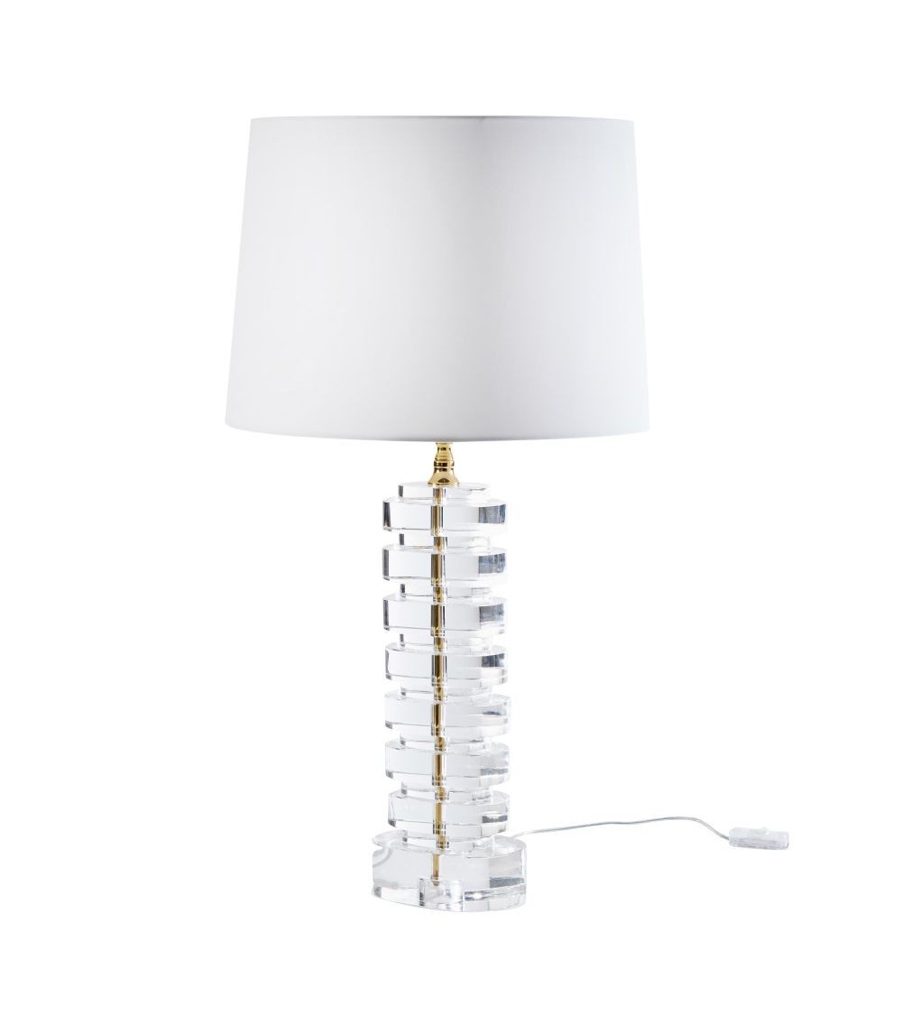 Le style classique se modernise et se montre sous une toute nouvelle lumière grâce à la lampe en cristal et abat-jour blanc JADE. Vous allez fondre pour sa base qui mise sur du cristal élégant et une forme déstructurée contemporaine à souhait. Son abat-jour à la teinte claire créera une ambiance douce et raffinée dans votre nid douillet. Que diriez-vous d'installer cette lampe sur un beau buffet blanc laqué aux côtés d'une bougie parfumée sous cloche ? Ambiance chic et romantique garantie !