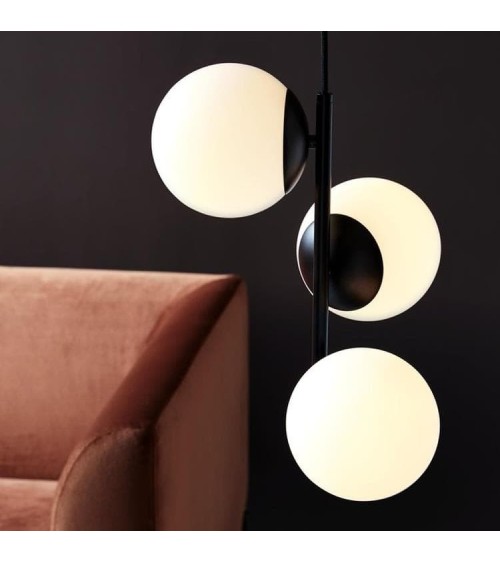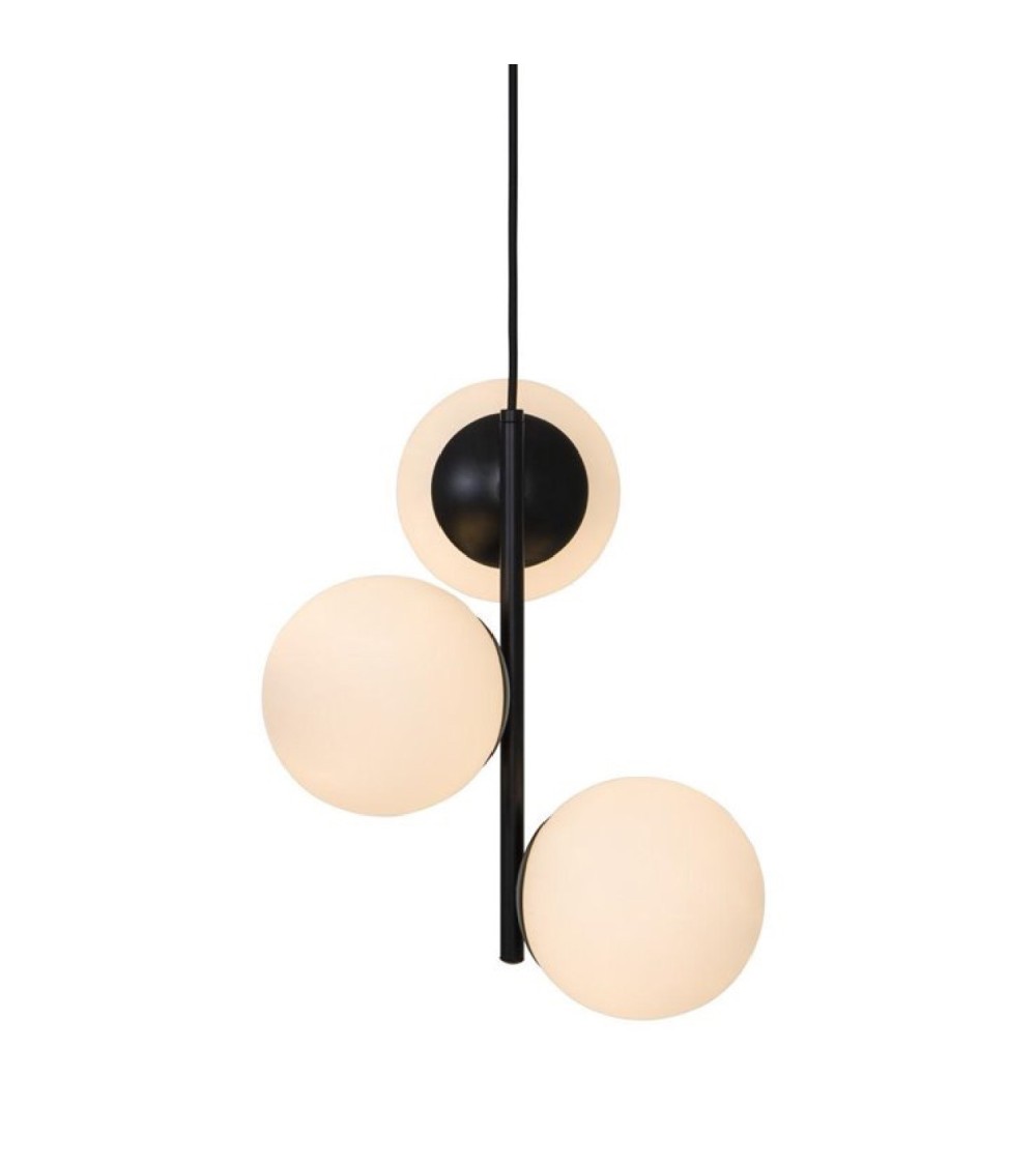 Suspension de la collection Lilly, éditée par Nordlux, est composée d'un câble d'alimentation en tissu (L200cm), d'une structure tubulaire supportant trois diffuseurs de forme globe en verre opalin.La structure minimaliste de la suspension Lilly apportera une élégance et une légèreté à votre décoration. Disposés de chaque côté de la suspension, les diffuseurs en verre opalin offriront une lumière douce et chaude à 360° dans toute la pièce ! Ampoule : 3x40W E14 (non fournies)