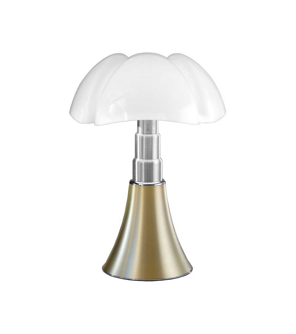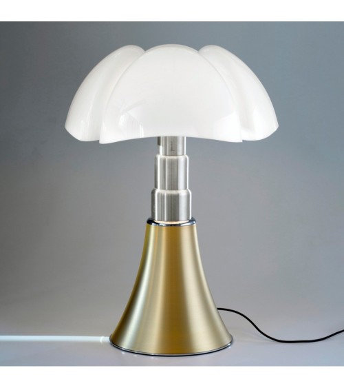 La lampe Pipistrello ou bien la lampe design qui vous fera parler italien ! Reine du design italien depuis plus de 50 ans, la lampe de sol Pipistrello est composée d'une base tulipée en métal, d'un bras en acier inoxydable brossé télescopique (66 à 86 cm) et d'un diffuseur en méthacrylate blanc opalin. Ce grand modèle est équipé de quatre ampoules LED fournies et son pied télescopique réglable lui fera prendre encore de la hauteur dans votre intérieur. Gae Aulenti, architecte et designer italienne de renommée mondiale, est la maman de l'emblématique lampe Pipistrello. Petit cours d'italien : cette lampe d'exception s'inspire de la silhouette onduleuse de la pipistrelle, une chauve-souris (Pipistrello en italien) ! Exposée dans les plus grands musées du monde, elle pourrait bientôt être exposée chez vous... Craquez pour elle et laissez sa douce lumière se diffuser dans votre intérieur. Noir*, Aluminium, Blanc, Laiton, Rouge ou Vert Agave, vous avez le choix de la couleur pour pimper votre intérieur ! Craquez également pour notre nouveau coloris exclusif aux notes d'été : Sable Doré. Une exclusivité développée par Martinelli Luce pour LightOnline, disponible sur les trois formats : Grande, Medium et Mini. *Noir (ou appellation d'origine Testa Di Moro) est un marron très foncé tirant vers le noir. Cette lampe est une authentique Pipistrello par Martinelli Luce. Elle sera livrée avec un certificat d'authenticité Martinelli Luce (cf. photos)Ampoules : 4x5,3W LED E14 (fournies) - 3000°K (couleur blanc chaud) - 470 Lumens (plus il y a de lumens, plus l'éclairage est puissant) - Durée de vie de l'ampoule : 25 000 heures