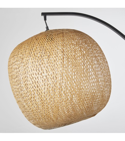 Créez une atmosphère accueillante et chaleureuse en adoptant le lampadaire en métal noir mat et bambou tressé ARGOS. Avec son abat-jour rond en bambou tressé et sa tige inclinée, ce luminaire déco mélange des lignes élégantes à une inspiration exotique parfaite pour un salon.