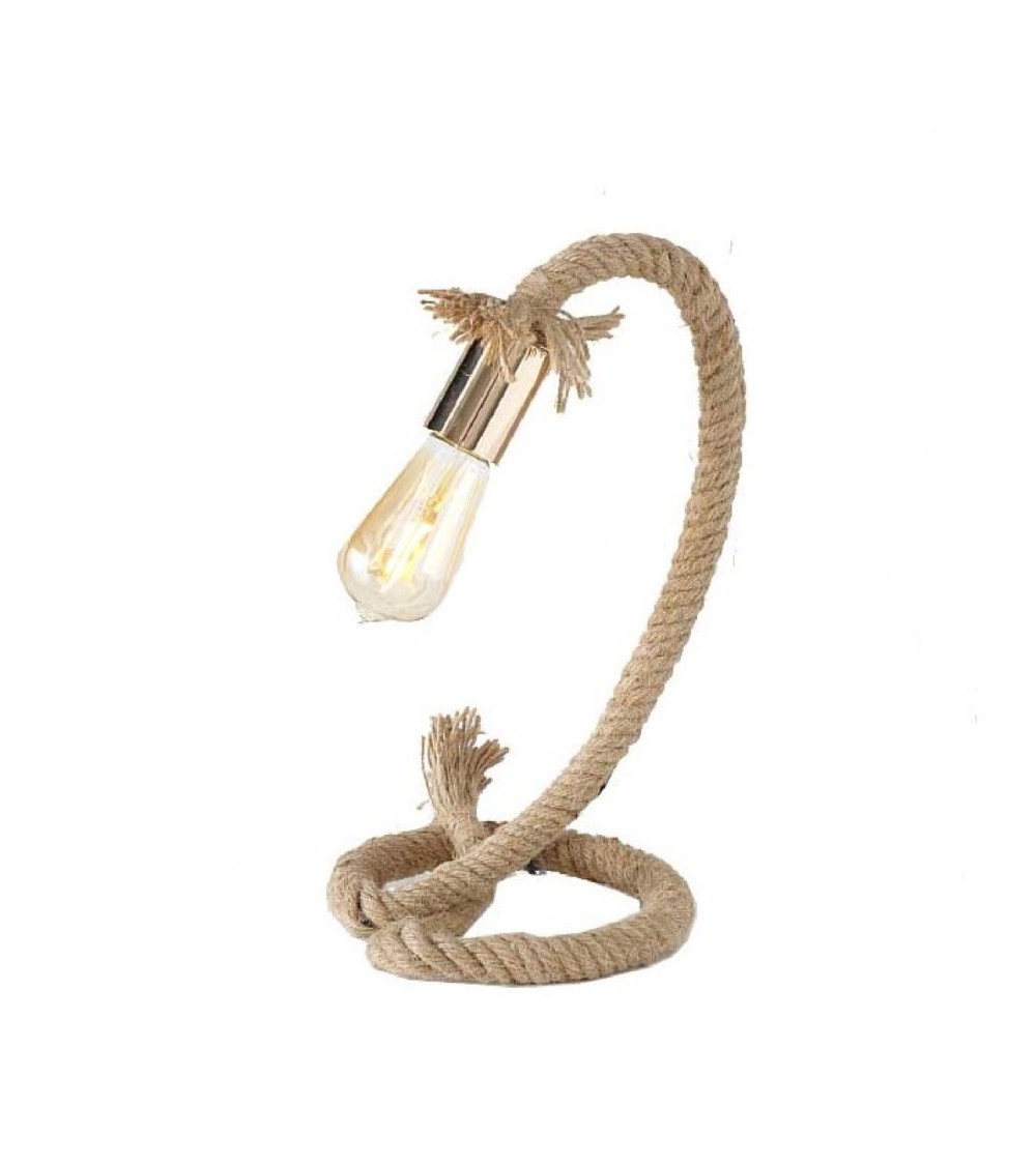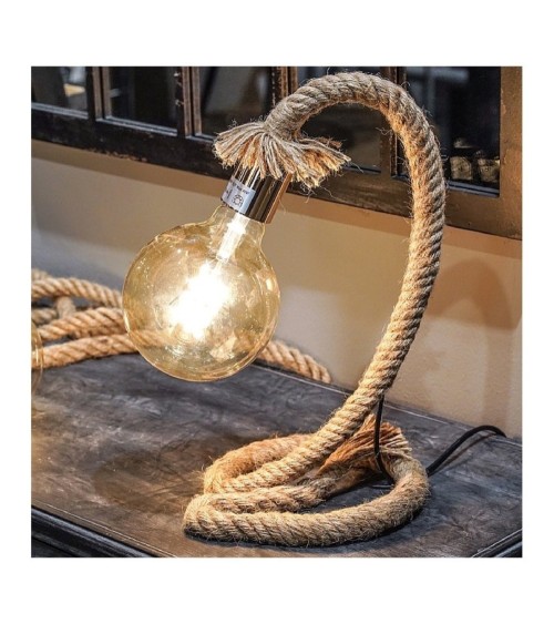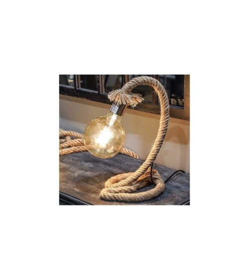 Lampe à poser décorative en corde, idéale pour une décoration bord de mer chaleureuse. Lampe composée d'une corde en jute rigidifiée par une structure en métal invisible. Dimensions: diamètre 18cm xHauteur 39cm - Couleur: Marron - Matière: Corde